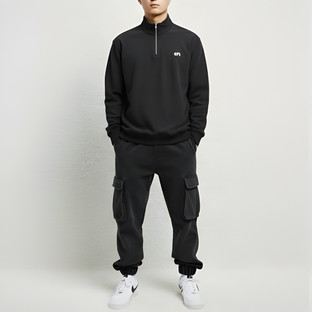 Introducing the STREZZ On Quarter Zipper Oversized Pullover — a must-have piece crafted for comfort, versatility, and modern streetwear style.